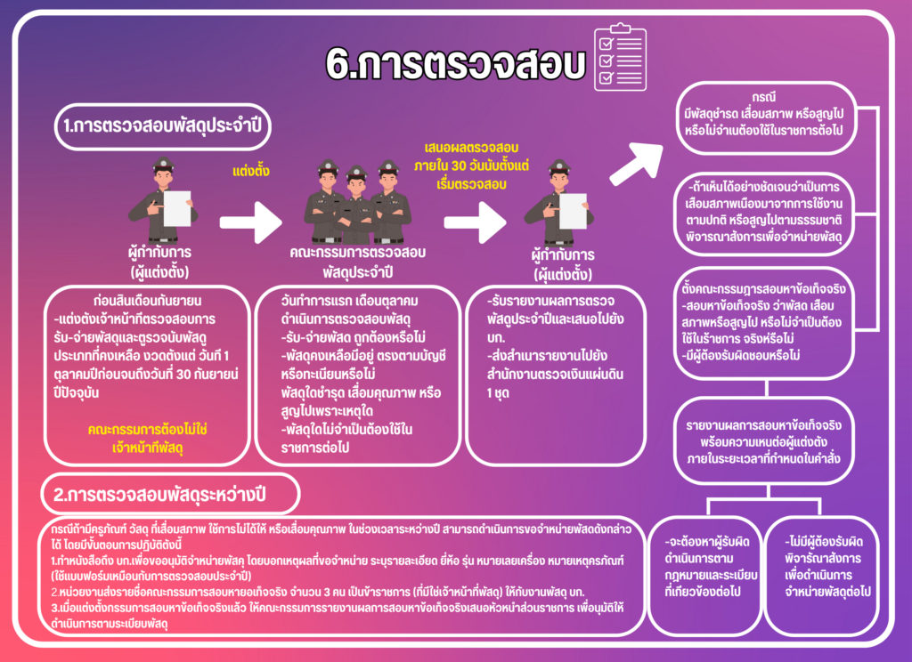 3. ตรวจสอบและตรวจนับอาวุธยุทธภัณฑ์ของสถานีตำรวจเพือ่ให้มีความพร้อมต่อการใช่งานในภารกิจประจำวัน